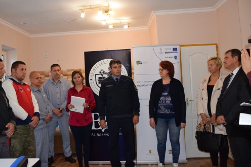 A jóvátételi programot Horváth Ákos bv. ezredes, intézetparancsnok nyitotta meg, aki elmondta köszöntő beszédében, hogy ezen jóvátételi esemény mennyiben mutat túl az elmúltban lebonyolítottakon, és megköszönte a programban résztvevők munkáját. Kiemelte a „Fogvatartottak reintegrációja” című kiemelt projekt fontosságát, és célkitűzéseit. Ezután Pesti Zoltánné elnök asszony, köszöntő beszédében mondta el azt, hogy az intézet részéről kezdeményezett megkeresés meglepetésként érte őt személyesen is és az egyesületet is. Majd köszönetét fejezte ki a felajánlásért, amely óriási segítséget nyújtott a felújítási munkálatok elvégzésében az egyesületnek.